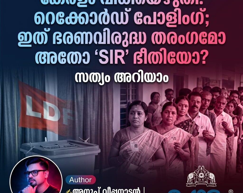 POLITICS കേരളം വിധിയെഴുതി: റെക്കോർഡ് പോളിംഗ്; ഇത് ഭരണവിരുദ്ധ തരംഗമോ അതോ ‘SIR’ ഭീതിയോ?by mangalam April 10, 2026