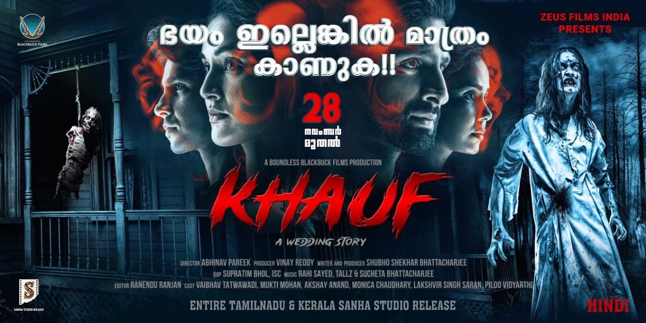 ഓരോ നിമിഷവും ഭയം നിറയ്ക്കുന്ന ദൃശ്യങ്ങളും ശബ്ദ വിന്യാസവുമായി ”ഖാഫ് – എ വെഡ്ഡിംഗ് സ്റ്റോറി” സിനിമ കേരളത്തിൽ റിലീസിന് എത്തുന്നു. സൂപ്പർ നാച്ചുറൽ ഹൊറർ ത്രില്ലറായ ചിത്രം നവംബർ 28ന് ആണ് തിയേറ്ററുകളിൽ എത്താനിരിക്കുന്നത്.