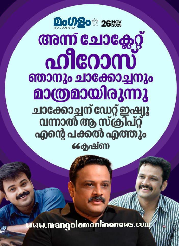 “അന്നത്തെ കാലത്ത് ചോക്ലേറ്റ് ഹീറോസ് എന്നാൽ ഞാനും ചാക്കോച്ചനും മാത്രമായിരുന്നു. ചാക്കോച്ചന് ഏതെങ്കിലും ഡേറ്റ് പ്രശ്നം ഉണ്ടായാൽ ആ സ്ക്രിപ്റ്റ് നേരെ എന്റെ അടുത്തെത്തുമായിരുന്നു. പുതുമയെ വലിയതായി കണ്ടിരുന്ന ഒരു കാലഘട്ടമായിരുന്നില്ല അത്,” കൃഷ്ണ ഓർമിച്ചു.