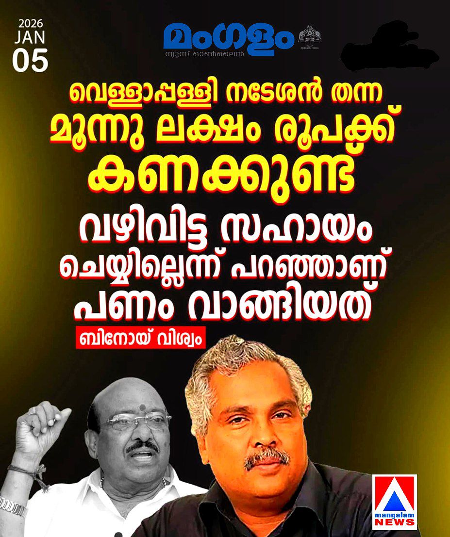 – Binoy Viswam admits receiving Rs 3 lakh from Vellappally Natesan