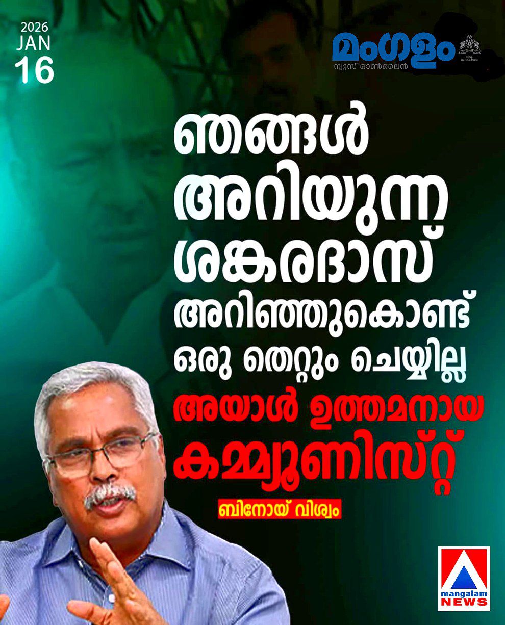 ​ശബരിമല സ്വർണ്ണക്കൊള്ള കേസിൽ അറസ്റ്റിലായ മുൻ ദേവസ്വം ബോർഡ് അംഗം കെ.പി. ശങ്കരദാസിനെ പിന്തുണച്ച് സി.പി.ഐ സംസ്ഥാന സെക്രട്ടറി ബിനോയ് വിശ്വം രംഗത്ത്. തങ്ങൾക്കറിയാവുന്ന ശങ്കരദാസ് അറിഞ്ഞുകൊണ്ട് ഒരു തെറ്റും ചെയ്യില്ലെന്നും അദ്ദേഹം ഒരു ഉത്തമനായ കമ്മ്യൂണിസ്റ്റാണെന്നും ബിനോയ് വിശ്വം പറഞ്ഞു.