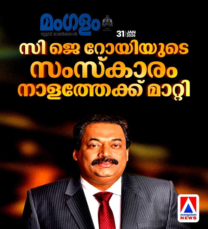 ബെംഗളൂരു: ബെംഗളൂരുവിൽ ഓഫീസിനുള്ളിൽ സ്വയം വെടിവെച്ച് ജീവനൊടുക്കിയ പ്രമുഖ വ്യവസായിയും കോൺഫിഡന്റ് ഗ്രൂപ്പ് ഉടമയുമായ സി.ജെ. റോയിയുടെ സംസ്കാരം ഫെബ്രുവരി ഒന്നിലേക്ക് (ഞായർ) മാറ്റി. വിദേശത്തുള്ള ബന്ധുക്കൾ എത്താൻ വൈകുന്നതിനാലാണ് ഇന്ന് നടത്താനിരുന്ന ചടങ്ങുകൾ മാറ്റിയത്. മൃതദേഹം നാളെ രാവിലെ വരെ ബോറിംഗ് ആശുപത്രി മോർച്ചറിയിൽ സൂക്ഷിക്കും. തുടർന്ന് സഹോദരൻ സി.ജെ. ബാബുവിന്റെ കോറമംഗലയിലെ വസതിയിൽ പൊതുദർശനത്തിന് വെച്ച ശേഷം കോറമംഗലയിലെ ദേവാലയത്തിൽ സംസ്കാരം നടത്തും.