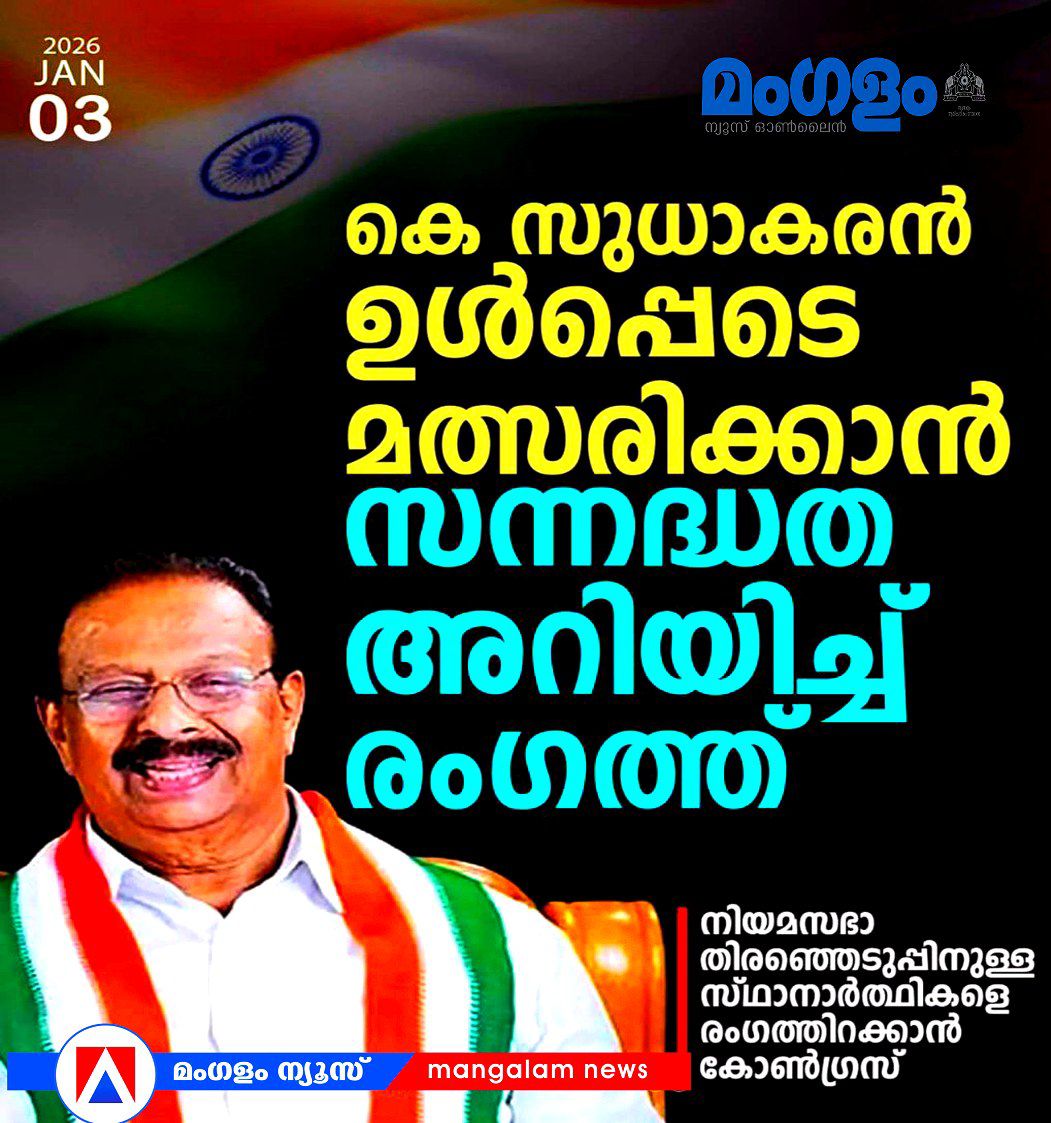 The Congress party is gearing up for the 2026 Kerala Assembly Election with a two-day camp in Sulthan Bathery named ‘Lakshya 2026’. Senior leader K. Sudhakaran has expressed his willingness to contest from Kannur. Discussions on candidate selection and seat sharing with UDF allies like Muslim League will be finalized by the end of January.