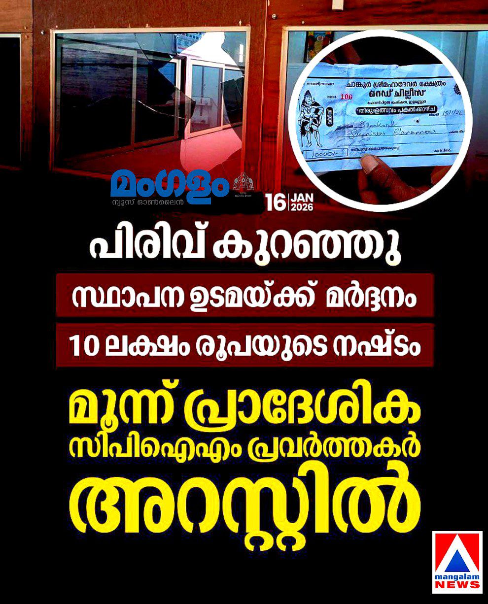 Three local CPIM workers arrested for assaulting a business owner in Pathanamthitta.