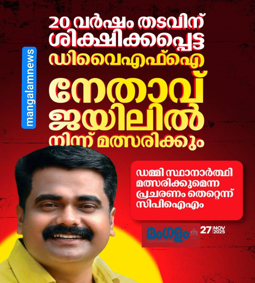 മത്സരിക്കുന്നതിന് നിഷാദിന് നിയമപരമായ തടസ്സങ്ങളൊന്നുമില്ലെന്ന നിയമോപദേശത്തിന്റെ അടിസ്ഥാനത്തിലാണ് തീരുമാനം. സ്ഥാനാർത്ഥി ജയിലിലാണെങ്കിലും പ്രവർത്തകർ വാർഡിൽ സജീവമായി പ്രവർത്തിക്കുമെന്നും പാർട്ടി അറിയിച്ചു. കേസുമായി ബന്ധപ്പെട്ട് ബുധനാഴ്ച ഹൈക്കോടതിയിൽ അപ്പീൽ സമർപ്പിച്ചിട്ടുണ്ട്.