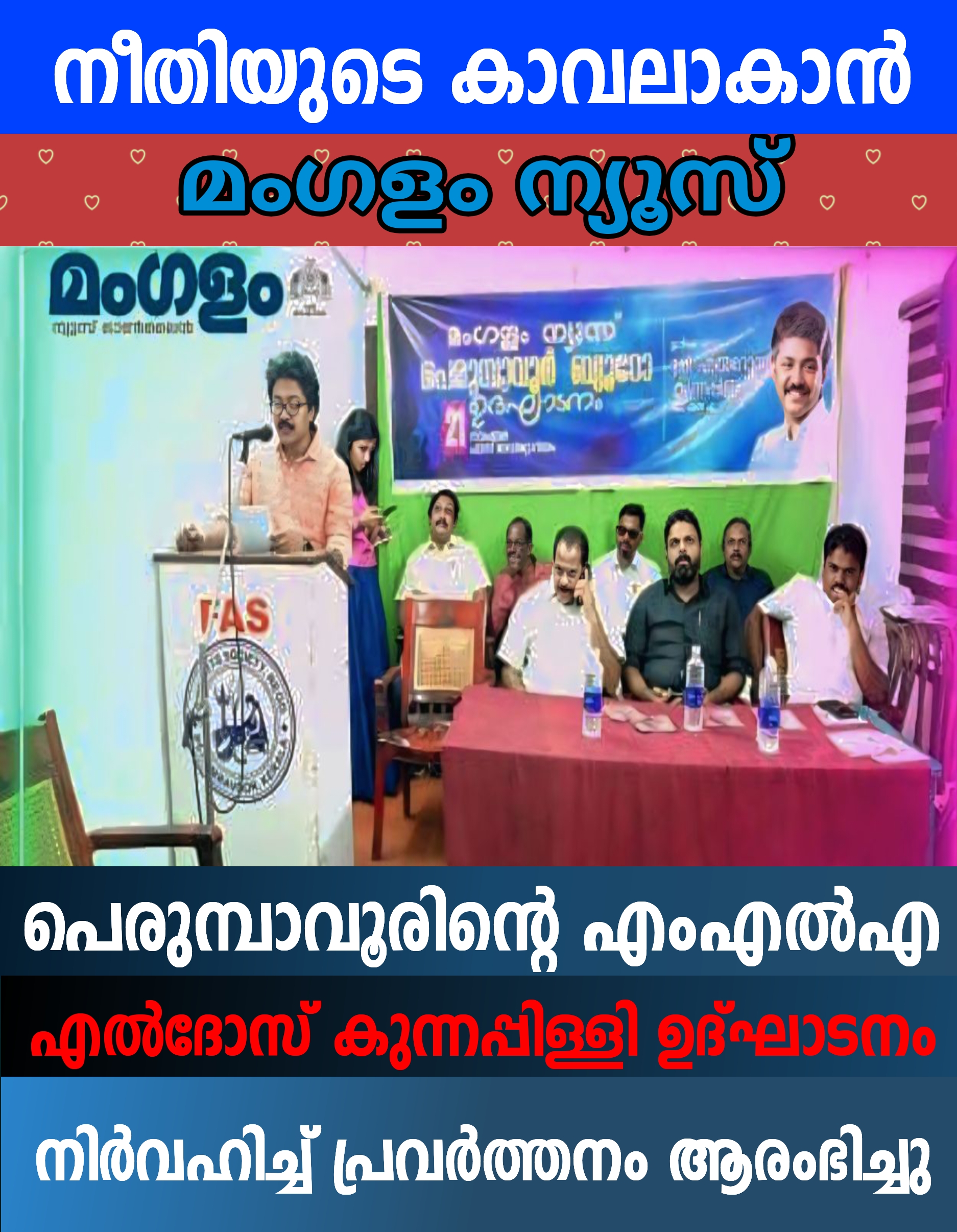പെരുമ്പാവൂർ: നവംബർ 21ന് പെരുമ്പാവൂരിൽ നടന്ന ചടങ്ങിൽ മംഗളം ന്യൂസ് ചാനലിന്റെ ഔദ്യോഗിക ഉദ്ഘാടനം എൽദോസ് കുന്നപ്പിള്ളി എം.എൽ.എ നിർവഹിച്ചു. കബീർ റഹ്മാൻ അധ്യക്ഷത വഹിച്ച പരിപാടിയിൽ വിവിധ മേഖലകളിലെ പ്രമുഖരും സാമൂഹിക പ്രവർത്തകരും പങ്കെടുത്തു.
