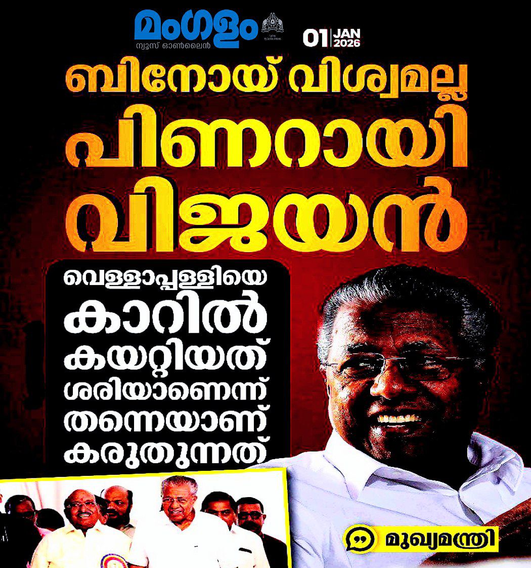 എസ്എൻഡിപി യോഗം ജനറൽ സെക്രട്ടറി വെള്ളാപ്പള്ളി നടേശനെ കാറിൽ കയറ്റിയതുമായി ബന്ധപ്പെട്ട് സിപിഐ സംസ്ഥാന സെക്രട്ടറി ബിനോയ് വിശ്വം ഉയർത്തിയ വിമർശനത്തിൽ പ്രതികരണവുമായി മുഖ്യമന്ത്രി പിണറായി വിജയൻ. ബിനോയ് വിശ്വമല്ലല്ലോ പിണറായി വിജയനെന്ന് പറഞ്ഞ മുഖ്യമന്ത്രി, താൻ സ്വീകരിച്ചത് തന്റെ നിലപാടാണെന്നും അത് ശരിയാണെന്നാണ് കരുതുന്നതെന്നും വ്യക്തമാക്കി. തിരുവനന്തപുരത്ത് നടന്ന വാർത്താസമ്മേളനത്തിലായിരുന്നു മുഖ്യമന്ത്രിയുടെ പരാമർശം.
