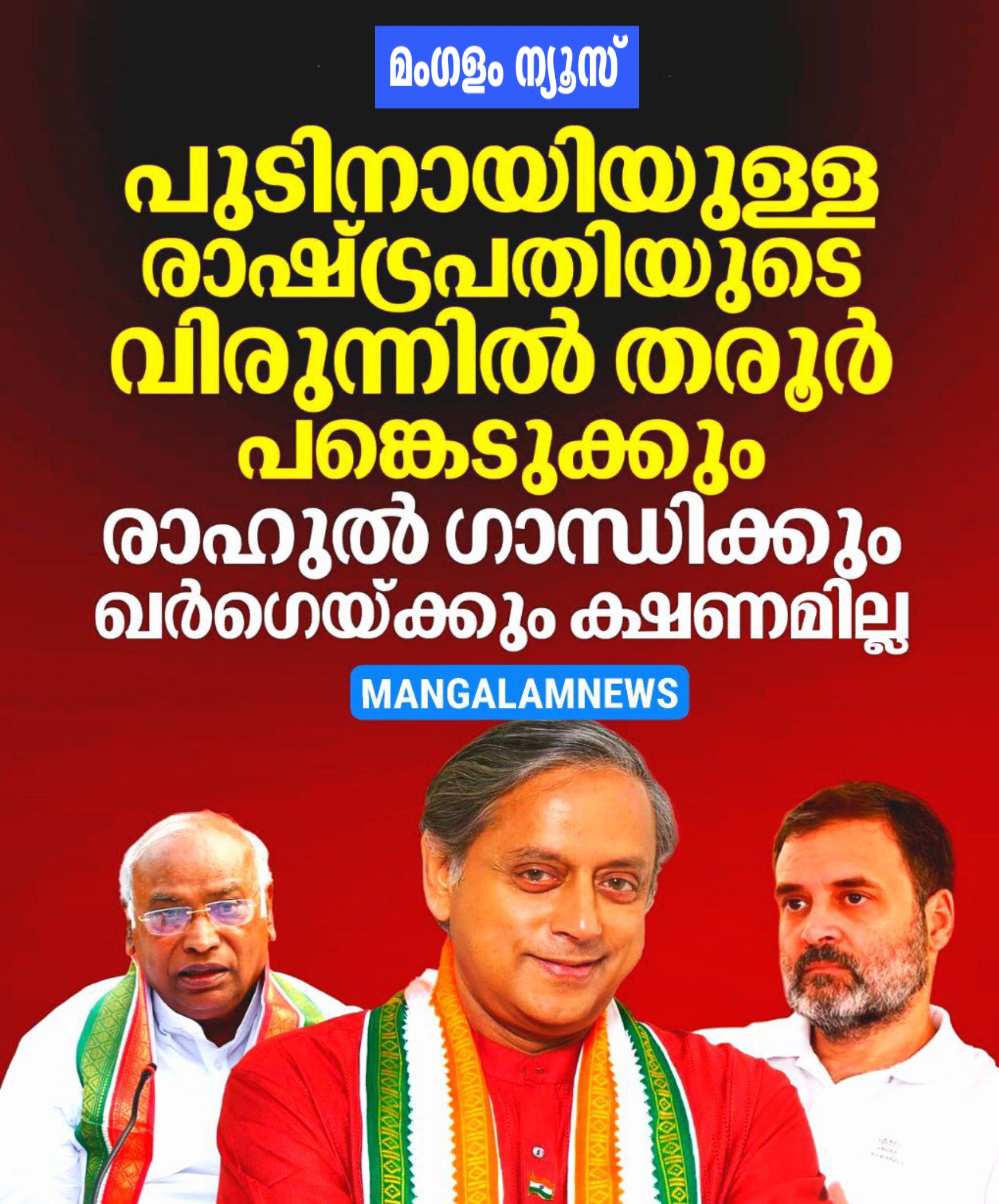 റഷ്യൻ പ്രസിഡന്റ് വ്ളാഡിമിർ പുടിന് വേണ്ടി രാഷ്ട്രപതി ഒരുക്കുന്ന വിരുന്നിലേക്ക് കോൺഗ്രസ് നേതാക്കളായ രാഹുൽ ഗാന്ധിക്കും പാർട്ടി അധ്യക്ഷൻ മല്ലികാർജ്ജുൻ ഖർഗെയ്ക്കും ക്ഷണം ലഭിച്ചില്ല. അതേസമയം, മുതിർന്ന കോൺഗ്രസ് എം.പി. ശശി തരൂർ വിരുന്നിൽ പങ്കെടുക്കുമെന്ന് അറിയിച്ചു.