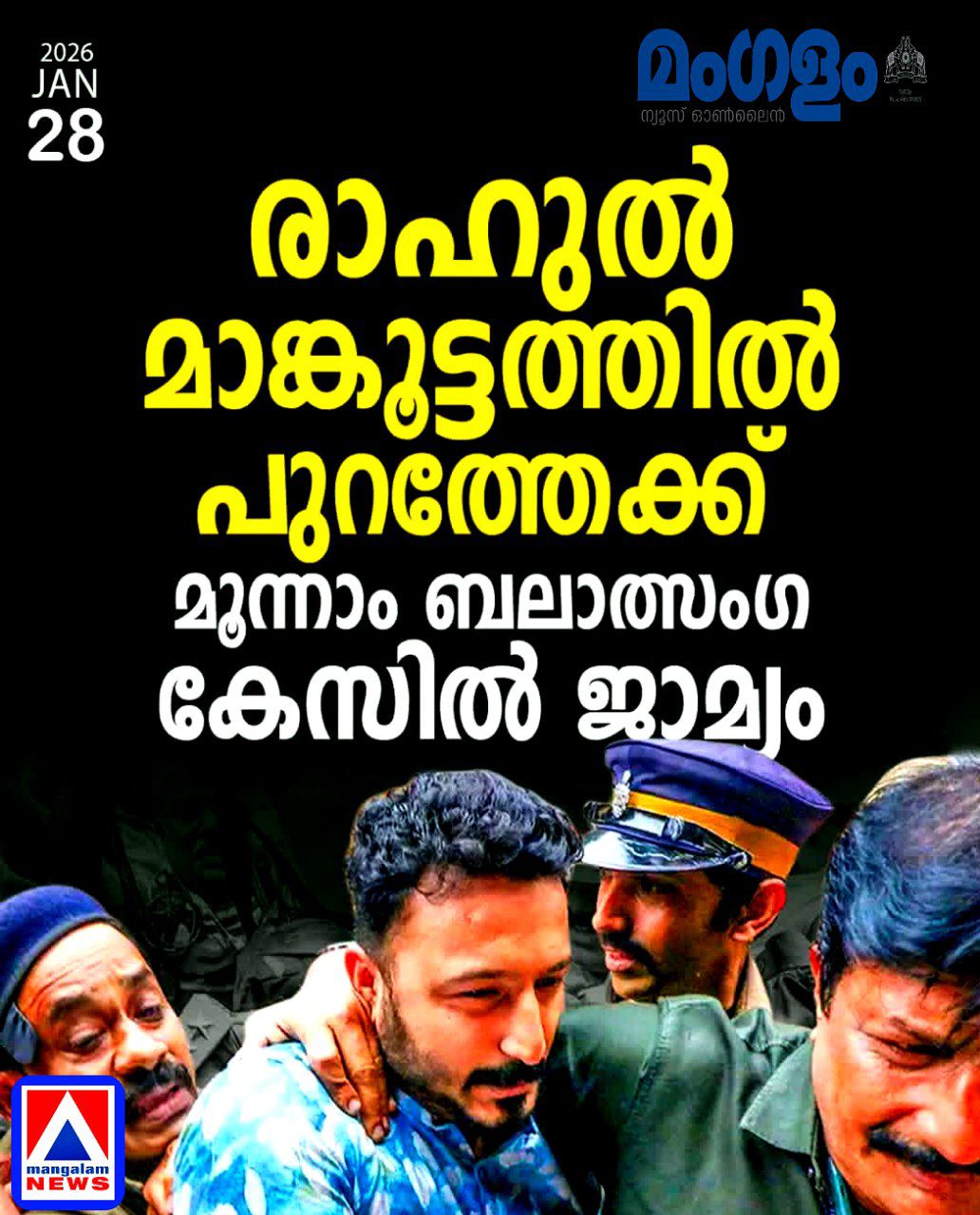 - Pathanamthitta Sessions Court grants bail to Palakkad MLA Rahul Mamkootathil in the third sexual assault case.