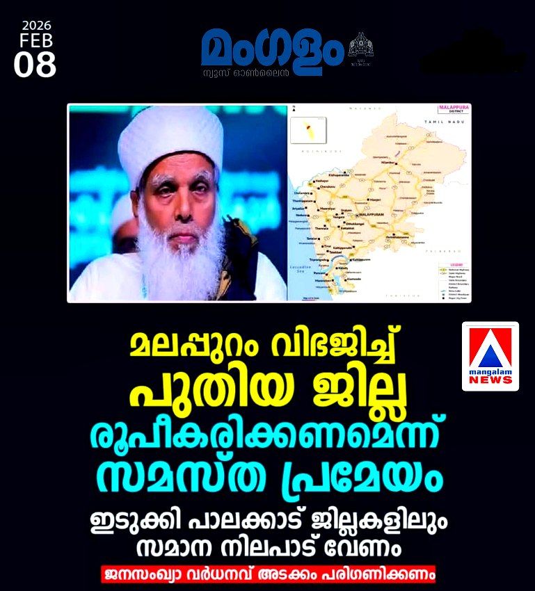 - Samastha’s 100th-anniversary conference passes a resolution for district bifurcation.