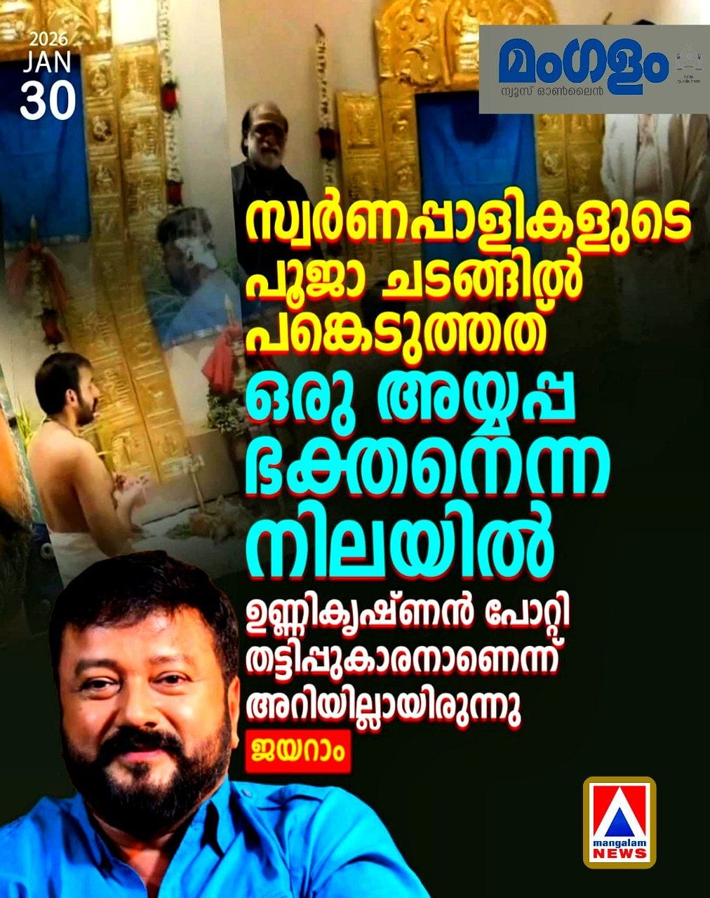 - Jayaram clarifies he participated in the rituals solely as a devotee and had no clue about Unnikrishnan Potti’s fraudulent activities.