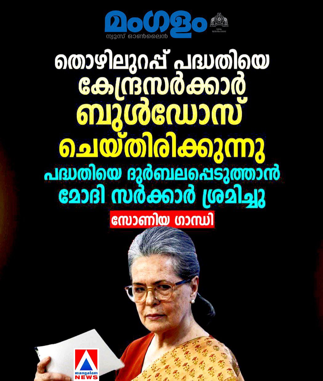 ‘തൊഴിലുറപ്പ് പദ്ധതിയെ കേന്ദ്രസർക്കാർ ബുൾഡോസ് ചെയ്തു; 11 വർഷമായി പദ്ധതിയെ ദുർബലപ്പെടുത്താൻ മോദി സർക്കാർ ശ്രമിച്ചു ‘ – സോണിയ ഗാന്ധി