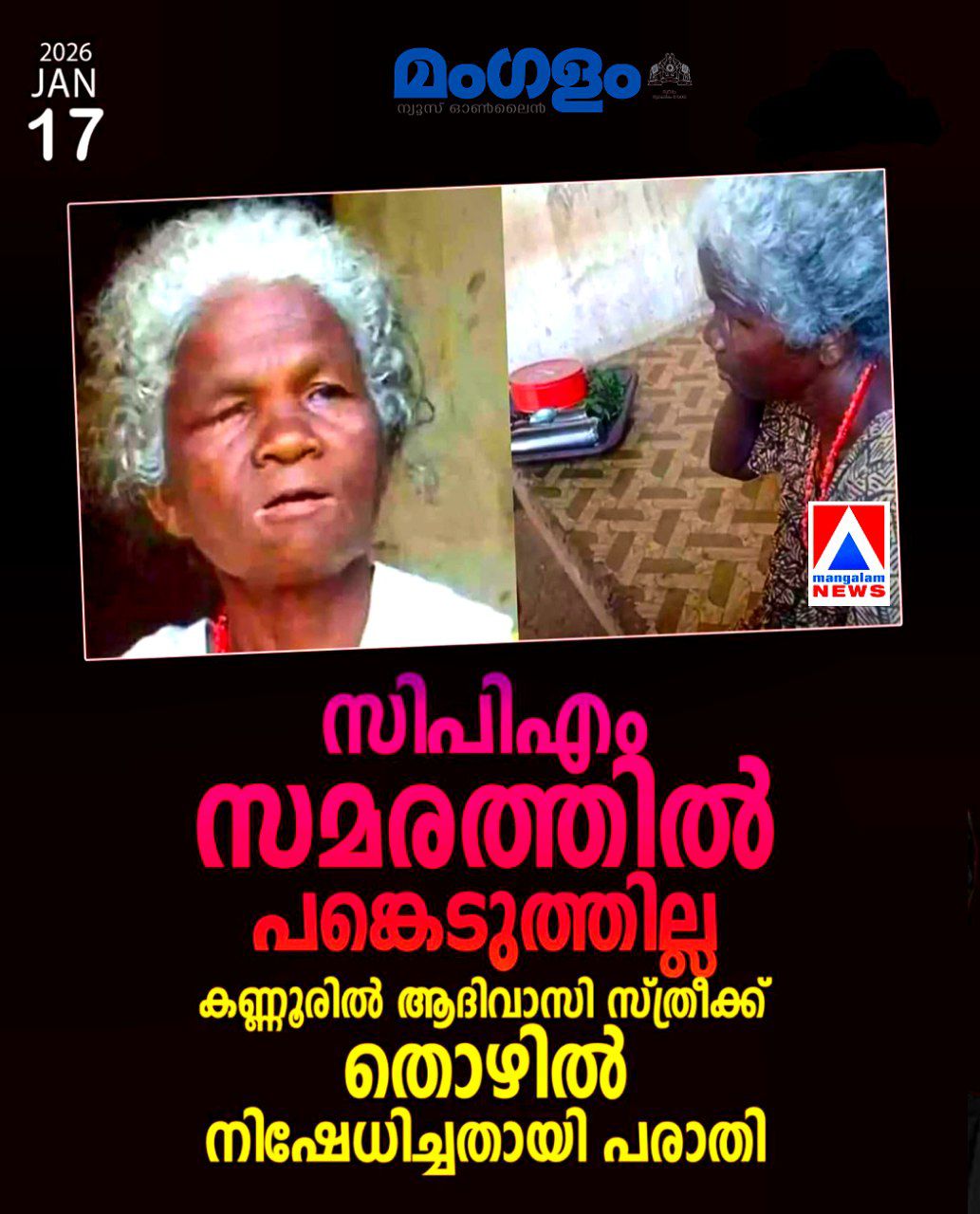 ​സി.പി.ഐ.എം സമരത്തിൽ പങ്കെടുത്തില്ല; കണ്ണൂരിൽ ആദിവാസി സ്ത്രീക്ക് തൊഴിൽ നിഷേധിച്ചതായി പരാതി