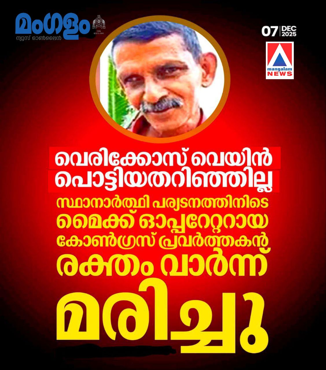 – Congress worker Raghu (53) dies during candidate tour in Champakkulam