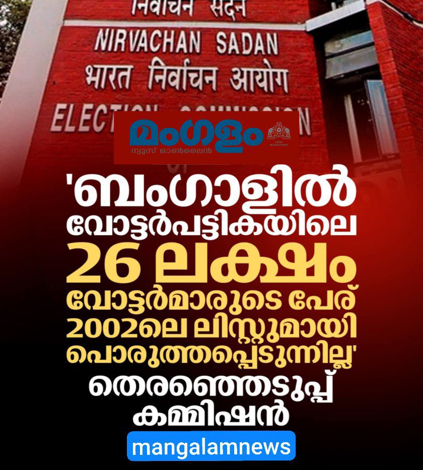 കൊൽക്കത്ത: പശ്ചിമബംഗാളിലെ പുതിയ വോട്ടർപട്ടികയിൽ 26 ലക്ഷം വോട്ടർമാരുടെ പേരുകൾ 2022 ലെ പട്ടികയുമായി പൊരുത്തപ്പെടുന്നില്ലെന്ന് തെരഞ്ഞെടുപ്പ് കമ്മീഷൻ വെളിപ്പെടുത്തി.