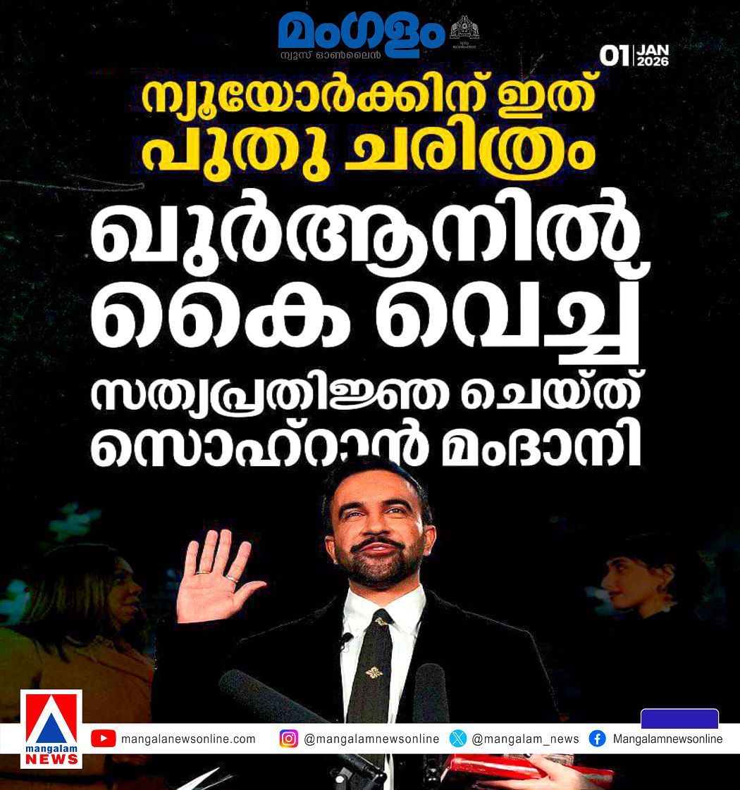 അമേരിക്കയിൽ പുതുവർഷം പിറന്ന് നിമിഷങ്ങൾക്കുള്ളിലായിരുന്നു ന്യൂയോർക്കിന്റെ മേയറായി മംദാനി ഔദ്യോഗികമായി സ്ഥാനമേറ്റത്. വർഷങ്ങളായി അടഞ്ഞുകിടക്കുന്ന ചരിത്രപ്രസിദ്ധമായ സബ്വേ സ്റ്റേഷനിലാണ് മംദാനിയുടെ സത്യപ്രതിജ്ഞാ ചടങ്ങ് നടന്നതെന്നത് ശ്രദ്ധേയമാണ്.